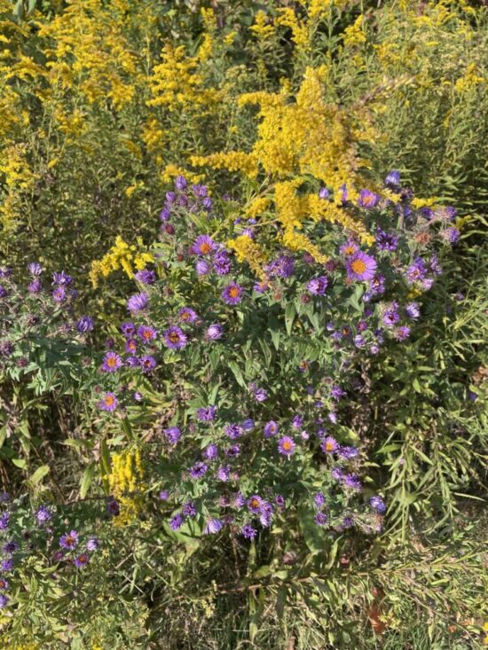 deep purple and pink blooms of New England Asters and bright yellow Goldenrod often bloom together.