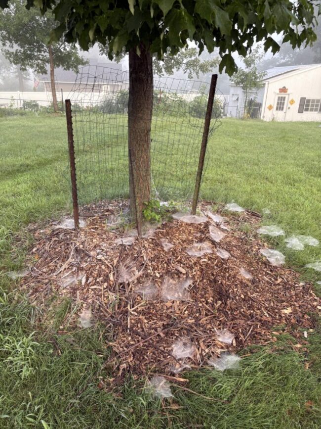Fairy rings, or webs of shelf spiders dot decorate the base of the tree.